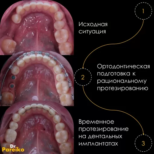 Исправление прикуса позволяет избежать боли и дискомфорта в височно-нижнечелюстном суставе после протезирования. Как правило, ортодонтический этап предусматривает использование брекет-систем. Продолжительность лечения зависит от сложности клинической ситуации и может продолжаться до двух лет.