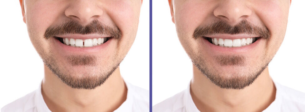 Диастемой называют непропорционально большой промежуток между передними зубами преимущественно верхней челюсти. Аномалия встречается примерно у 20 % пациентов разного возраста, но у детей часто исчезает самостоятельно после того, как молочные зубы сменятся постоянными. Причины могут быть разными: неправильное расположение уздечки губ, большая костная перегородка в центре верхней челюсти, маленькие зубы, потеря зубной единицы. В 50 % случаев диастема передается по наследству. Иногда щель между зубами вызывает психологический дискомфорт, и другие проблемы в зоне улыбки.