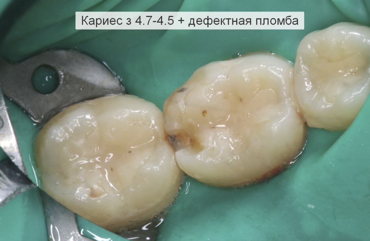 Кариес зубов 4.7, 4.5 + дефектная пломба