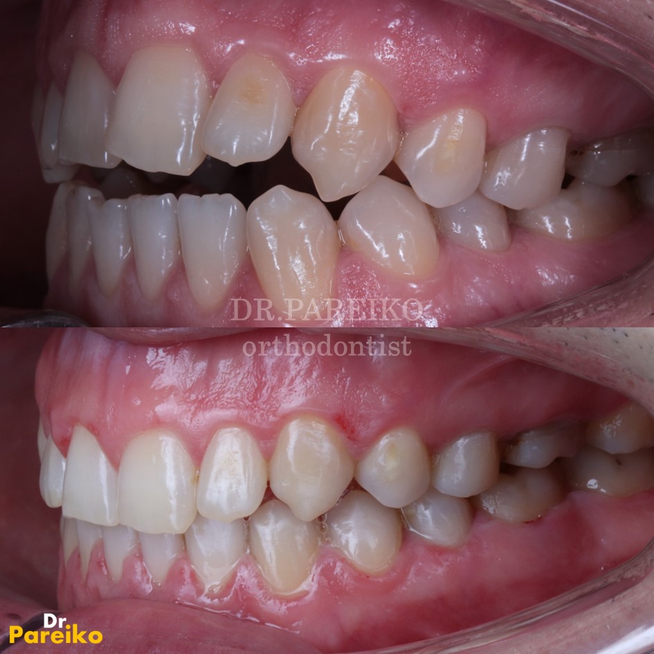 (Первое фото выполнено перед операцией на верхней челюсти, на нижней уже установлены импланты и первичный протез.)