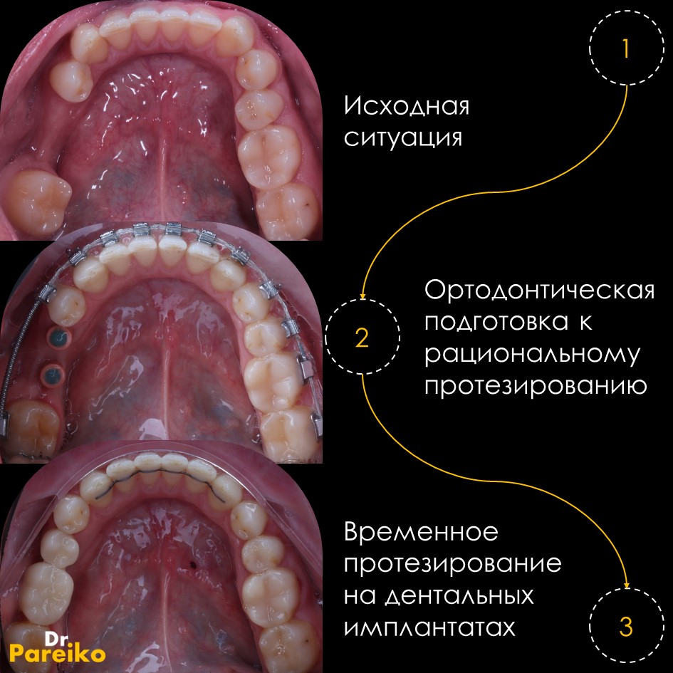 По желанию пациентки имплантация на нижней и верхней челюсти проводилась с разницей в 2 недели.