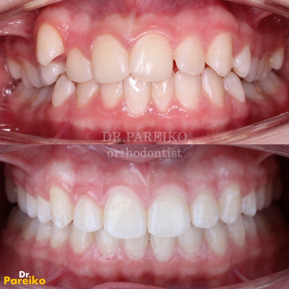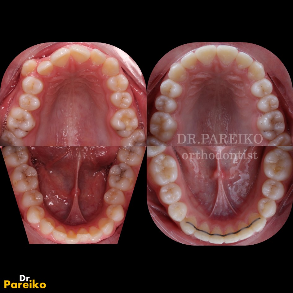 После окончания ортодонтического лечения, пациенту была проведена комплексная профессиональная гигиена, изготовлены ретенционные каппы и установлен несъемный ретейнер на н/ч.